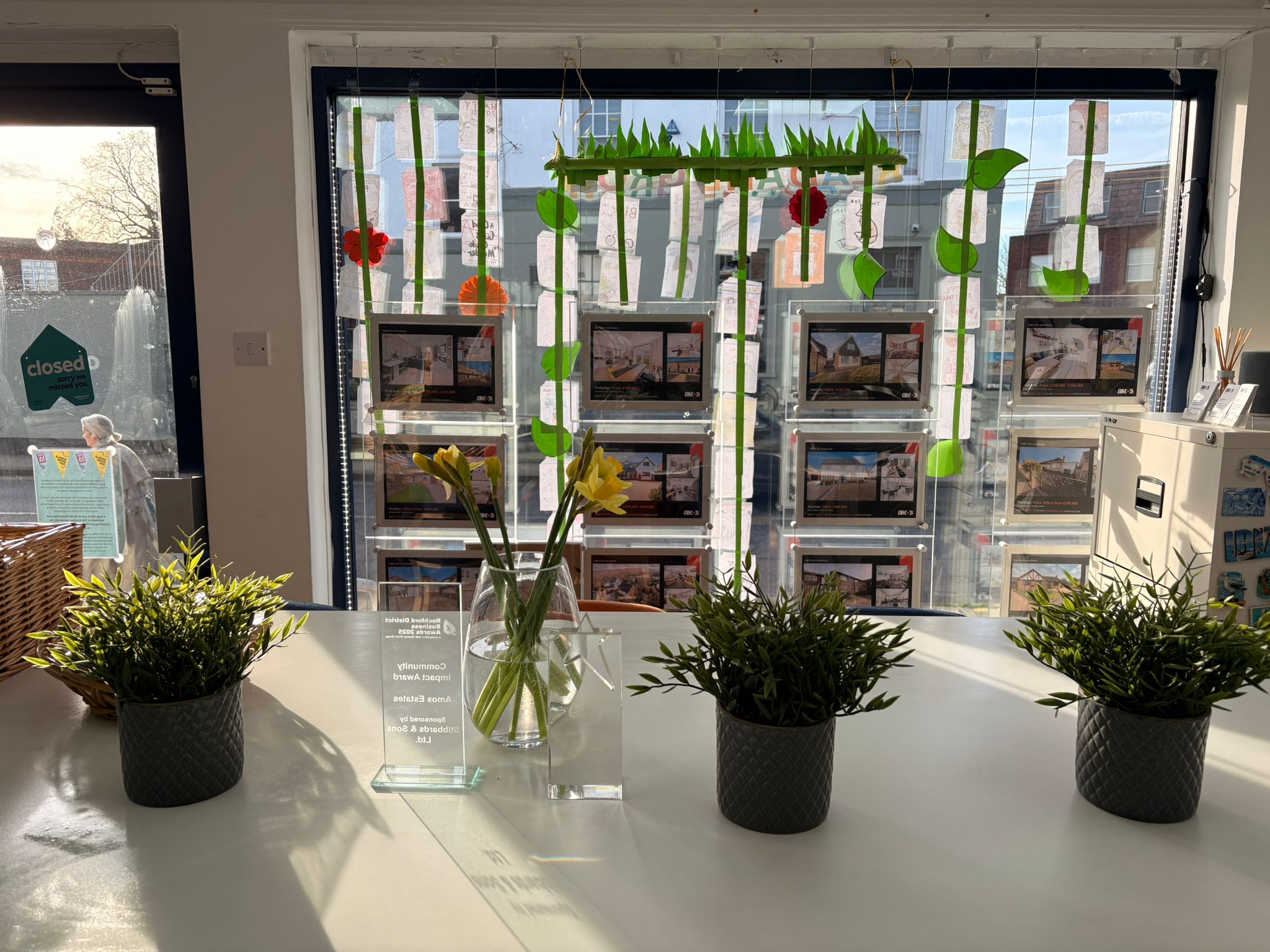 Colour and creativity have arrived on Spa Road as local pupils from Lift Greensward School transform our Amos Estates window, helping Hockley celebrate the joy of reading ahead of World Book Day.